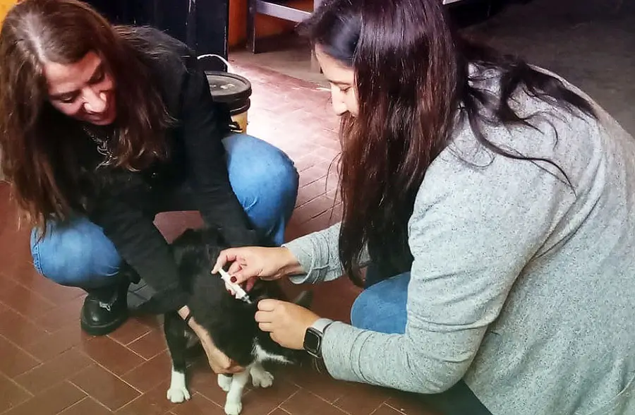Personal del área que dirige Soledad Galíndez realizó la vacunación antirrábica preventiva de mascotas en un radio de 200 metros, alcanzando un total de 57 animales protegidos: 36 perros y 21 gatos.