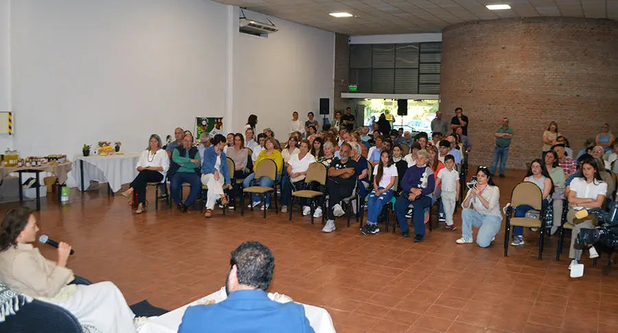 Entrevistada por Jorge Ayetz (h) en el salón auditorio, donde también se realizó la muestra organizada por el Municipio, Analía contó su interesante historia, surgida en el seno de una familia que desarrolló su tarea agropecuaria en el Delta entrerriano.