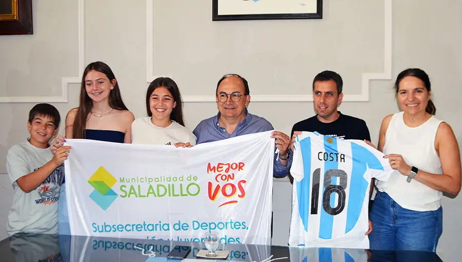 Tras consagrarse subcampeona con la Selección Argentina Sub15 en la primera edición de la Liga Evolución Conmebol, la joven futbolista Antonia “Iaiu” Costa (14) regresó este fin de semana a Saladillo para visitar a su familia y también fue recibida y reconocida por el intendente José Luis Salomón y el subsecretario de Deportes, Nicolás Tosca.
