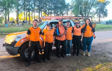 Ambos se acercaron hasta el predio del Club Bancarios, para interiorizar a las personas sobre esta herramienta tecnológica que, a través de las cámaras del sistema de videovigilancia en la planta urbana y el interior del distrito, permite prevenir y colaborar en la resolución y esclarecimiento de hechos delictivos.