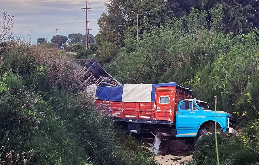 Afortunadamente sin consecuencias graves, resultó el despiste y vuelco de un camión con acoplado en la Ruta Nacional 205, en inmediaciones del ingreso a Del Carril.
