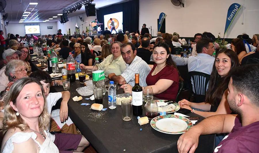 El público disfrutó de una exquisita entrada y luego del plato principal. Más tarde, se sirvió el postre y finalmente, a la hora del baile, bajo la ocurrente animación de Javier Bustamante, se llevó a cabo el brindis y el corte de la torta con la presencia de las autoridades.