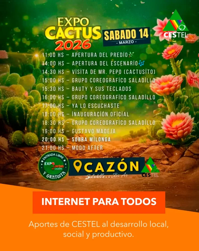 Este fin de semana, durante el desarrollo de la Expo Cactus en Cazón, el área de telecomunicaciones de la CES (CESTEL) será el soporte de internet del evento.