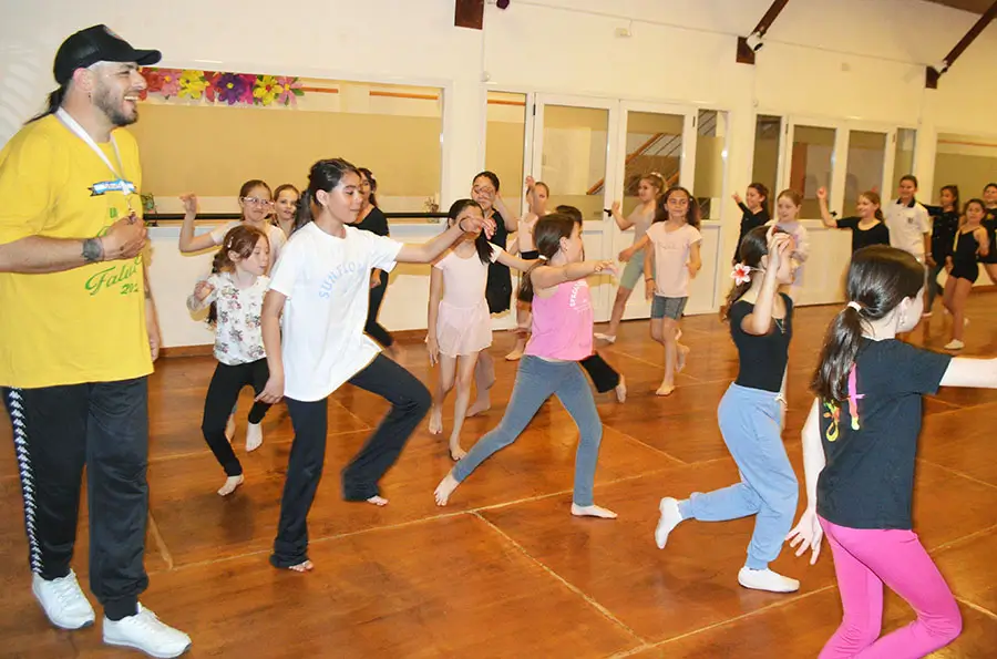 Este lunes, Iara Fassi, bailarina del cuerpo estable del Teatro Colón, coreógrafa y docente, compartió dos clases –una para el nivel intermedio y otra para avanzados– en la escuela ISA Saladillo.