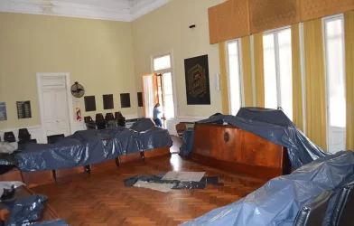 Debido al deterioro que presentan una parte del techo y las canaletas embutidas, las cuales datan de la época en que fue construido el centenario edificio, las filtraciones ocasionaron graves daños y obligaron a clausurar momentáneamente el recinto Héroes de Malvinas del Concejo Deliberante, teniendo que mudar el recinto al hall del primer piso.