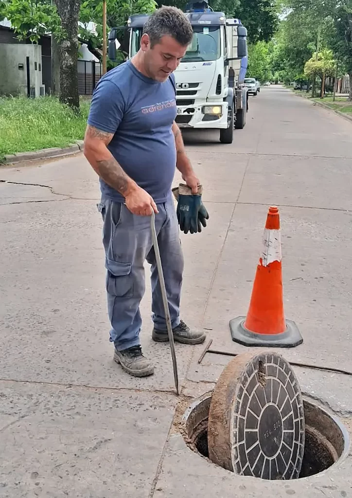 Personal de la Subsecretaría de Servicios Sanitarios y Gestión Ambiental realizó trabajos de limpieza y desobstrucción de cañerías cloacales en la intersección de las calles Álvarez de Toledo y Lope Serrano.