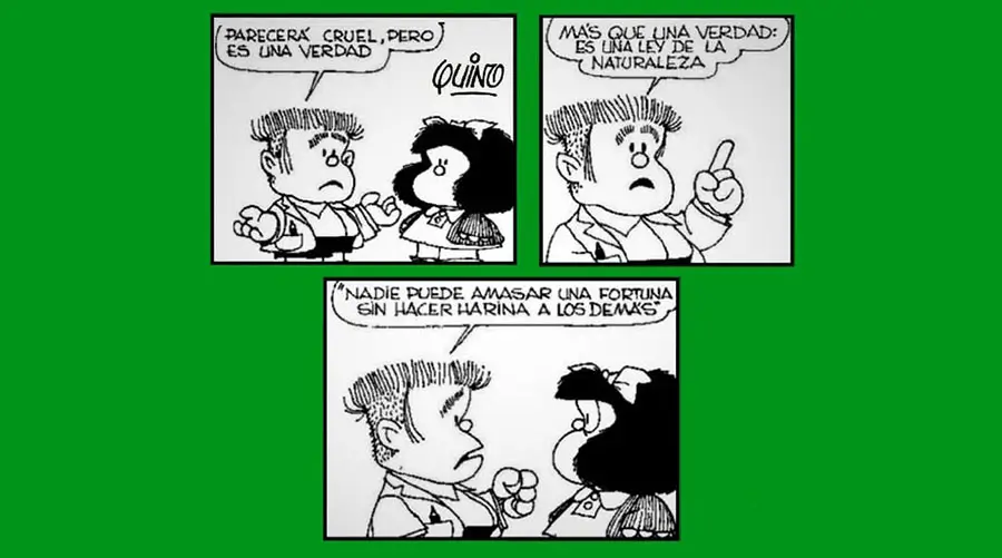 Pero hay de aquellos empresarios que el único Dios que tienen es el Dios del dinero y sólo quieren tener pingües ganancias a costa de avasallar los derechos de los trabajadores, haciendo verdad aquella expresión de Manolito en la revista Mafalda del genial Quino: “Nadie puede amasar una fortuna sin hacer harina a los demás”.