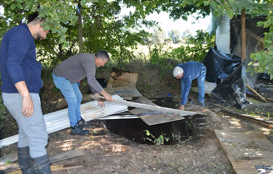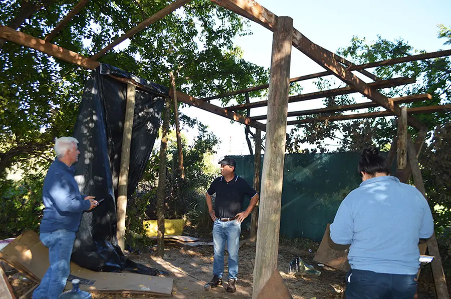 Además de levantar parte de la estructura en el terreno usurpado, también cavó un pozo séptico para el baño y usó la tierra para rellenar y nivelar.