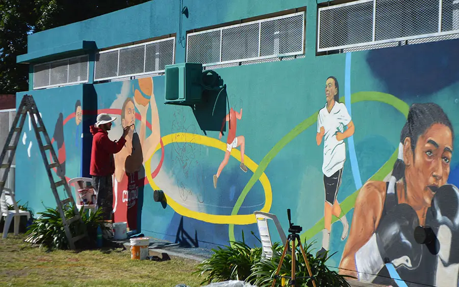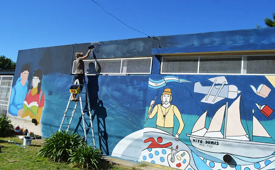 En 2024 pintaron en el barrio Falucho, frente a la cancha de Oro Verde, y este año lo están haciendo en la Secundaria 6, próxima al barrio Obrero.
