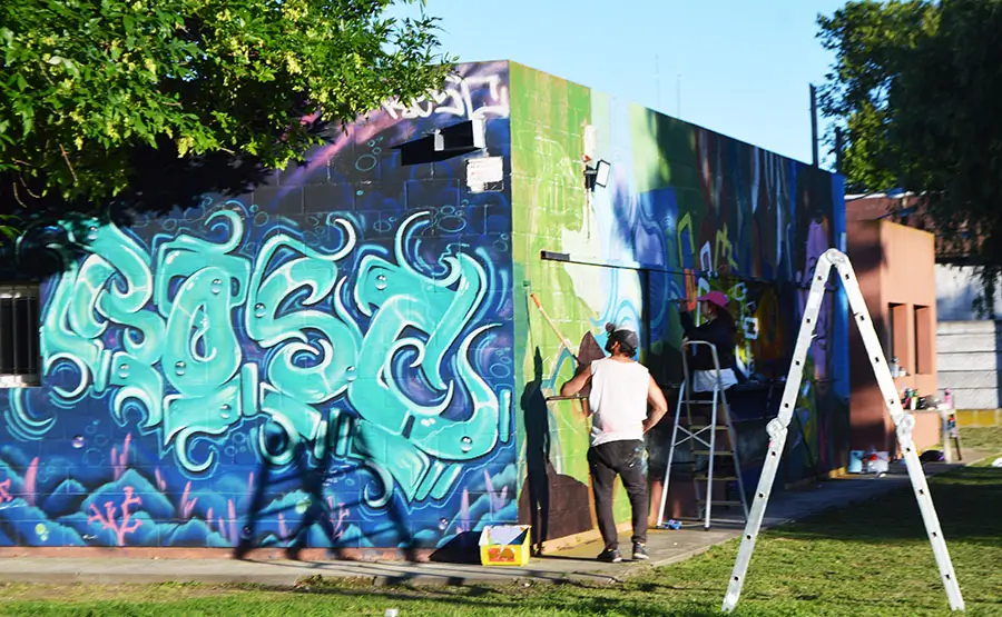 En el transcurso de estos cuatro días, una veintena de artistas de diferentes lugares pintan obras de arte en cuatro espacios públicos de la ciudad: la Escuela Secundaria 6 Vito Dumas, el Parque República de Brasil, el Parque República de Italia y el Skatepark.