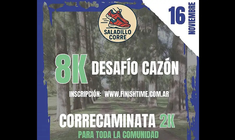 Organizada por la Unión Padres de Familia del Instituto Niño Jesús (INJ) de Saladillo con el apoyo del Municipio, se llevará a cabo el domingo 16 de noviembre la prueba atlética Desafío Cazón.