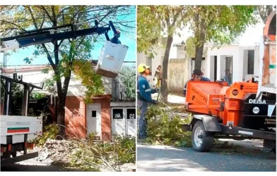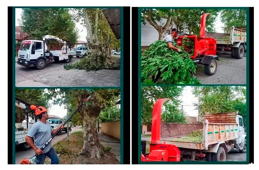 La cuadrilla de Arbolado Urbano cuenta con hidrogrúa, podador de altura y chipeadora.