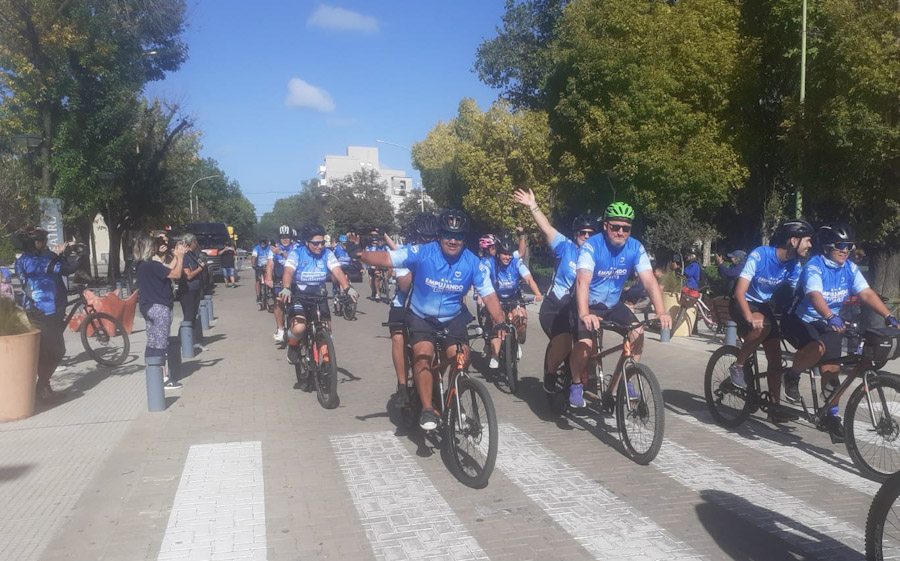 Algunos se sumaron en tándems y otros en bicicletas individuales, todos vestidos de azul, a los efectos de visibilizar, comprender y construir una sociedad más empática, en torno al autismo.