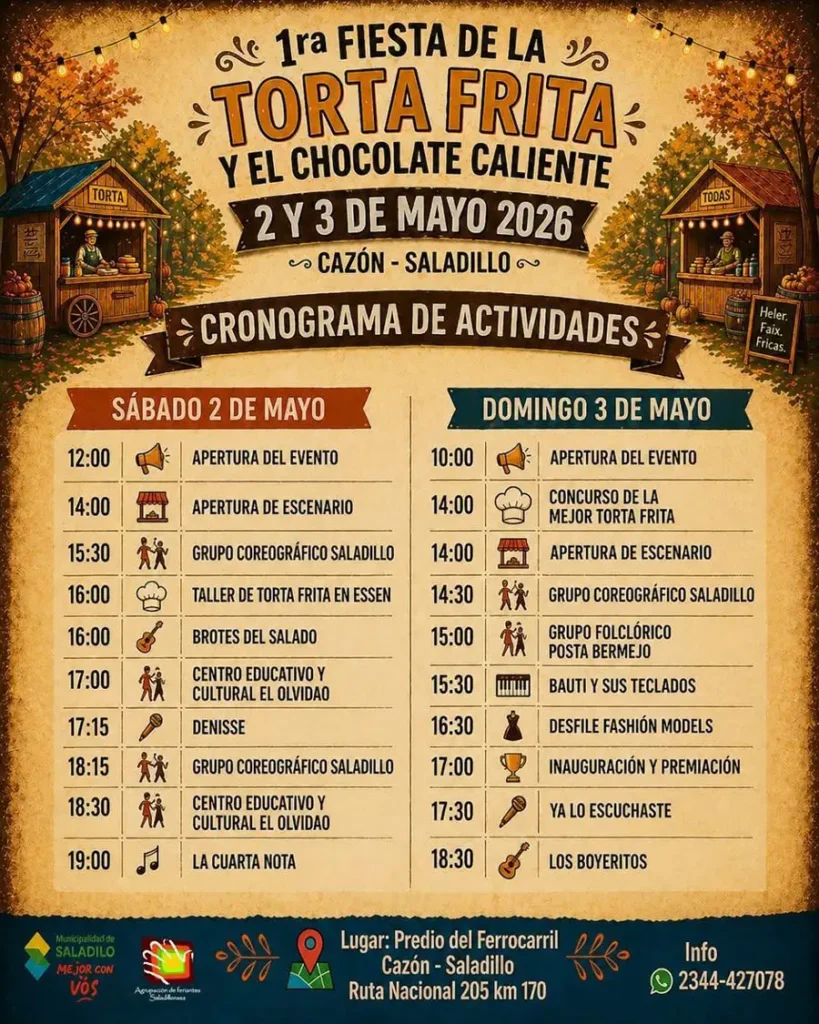 El evento tendrá lugar en el predio del Ferrocarril, donde vecinos y visitantes podrán participar por primera vez del concurso de la torta frita, que contará con premios en efectivo.