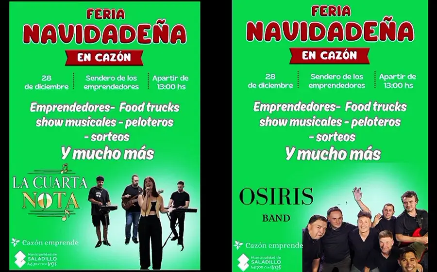 Este domingo 28 de diciembre, en el Sendero de los Emprendedores de Cazón, con entrada libre y gratuita, se llevará a cabo a partir de las 13, una imperdible Feria Navideña.