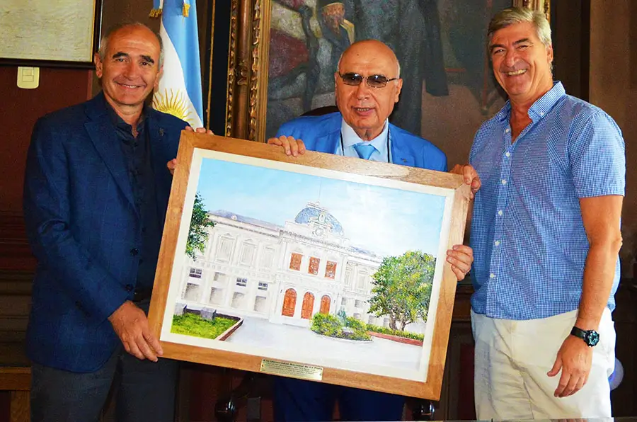 Por lo tanto, le entregué un cuadro con la imagen del edificio histórico de la Universidad realizado por la artista plástica saladillense Valeria Di Pascuale.
