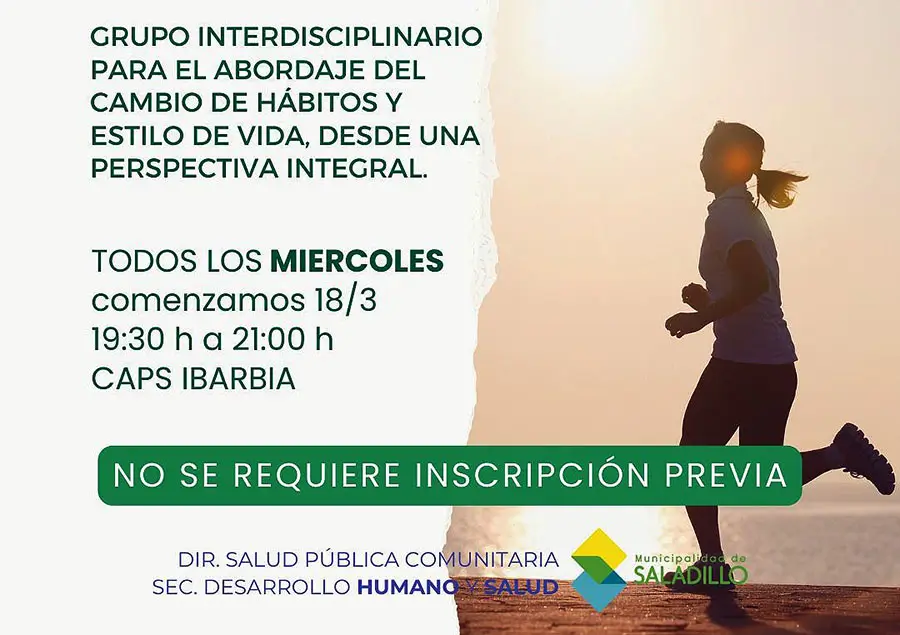 Impulsado desde la Dirección de Salud Pública Comunitaria del Municipio, comenzará a funcionar pronto en Saladillo un nuevo ciclo de Hacia un Cambio Saludable, grupo interdisciplinario pensado para acompañar el cambio de hábitos y estilo de vida desde una perspectiva integral.