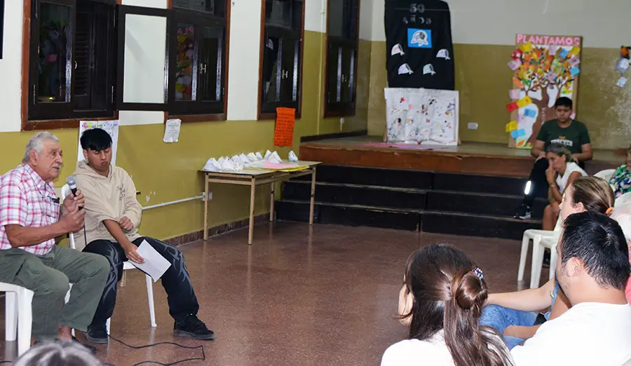 Invitado por la Escuela Secundaria de Adultos CENS N°451 de Saladillo, el vecino Jorge Cura se prestó este jueves a una interesante ronda de preguntas por parte de estudiantes y docentes, con motivo de los 50 años del último golpe cívico militar.