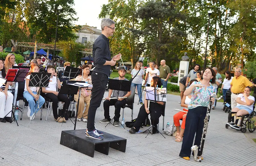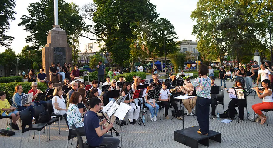 La Banda Municipal de Saladillo, dirigida por la profesora y clarinetista Julieta Ugartemendía, cumplió su primer aniversario y lo celebró este viernes por la tarde, en la plaza principal, con un agradable concierto abierto al público.