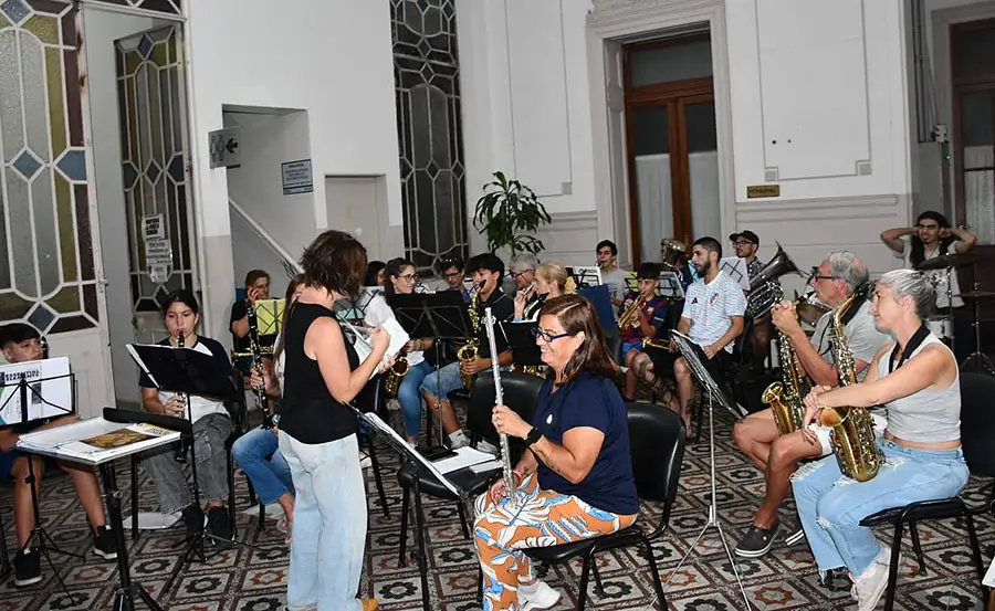 Después de la enriquecedora experiencia de los conciertos itinerantes por plazas y barrios de la ciudad a fines de febrero, esta semana la Banda Municipal de Saladillo que dirige Julieta Ugartemendía comenzó sus ensayos abiertos en el hall del Municipio.