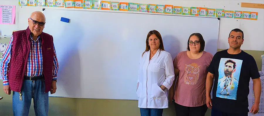 Fui recibido por su directora, Prof. Patricia Carballeda; el presidente de Cooperadora, Mario Claverí; y la tesorera Silvia Lucio. Aunque no se encontraba presente, participó de las gestiones el señor Diego Houtre, también integrante de la Asociación Cooperadora. La escuela, para renovar la totalidad de los pizarrones blancos, necesitaba diez.