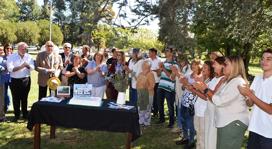 La ceremonia se llevó a cabo frente al histórico edificio del establecimiento, donde se brindaron testimonios y también, al final, se compartió la torta de cumpleaños.