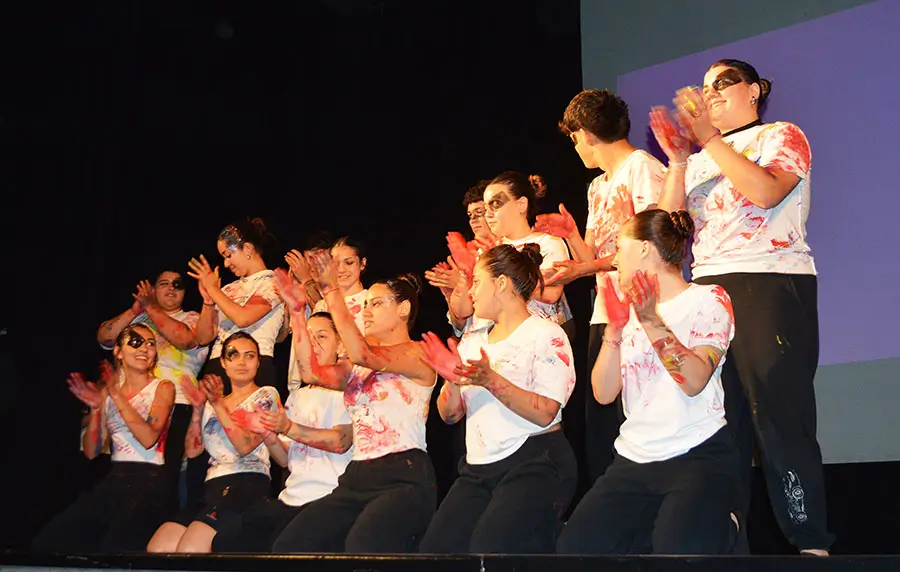 En el cierre, movilizados por el interrogante ¿qué pasaría si dejáramos de mirar los cuerpos con los ojos que la sociedad nos enseñó?, las y los estudiantes de 6to ARVIS, desde la materia Expresión Corporal, y coordinados por el profesor Leo Yovanovich, invitaron a ver cómo la mirada social moldea nuestros cuerpos y cómo paso a paso podemos empezar a deconstruirla.