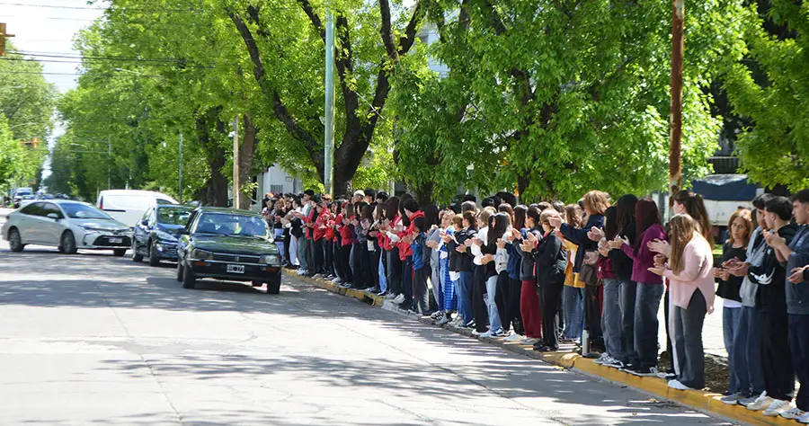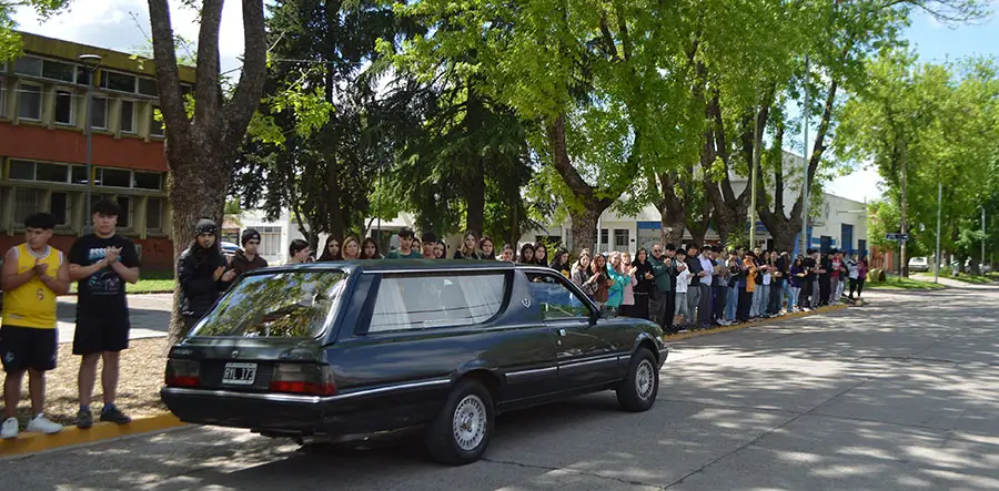 Antes del sepelio en el cementerio local, el cortejo fúnebre pasó frente a la Secundaria 2, donde estudiantes, docentes y directivos formaron un cordón humano en su honor para despedir a esta entrañable docente.