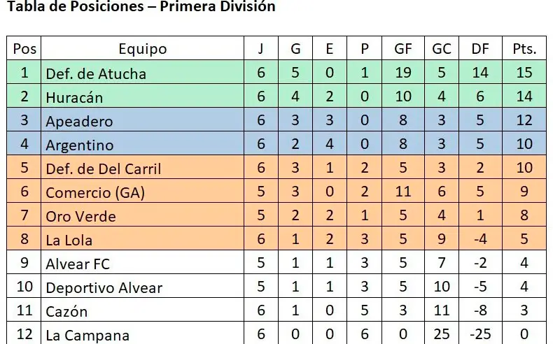 De este modo, Atucha subió a lo más alto de la tabla con 15 puntos, uno más que Huracán, su inmediato perseguidor.
