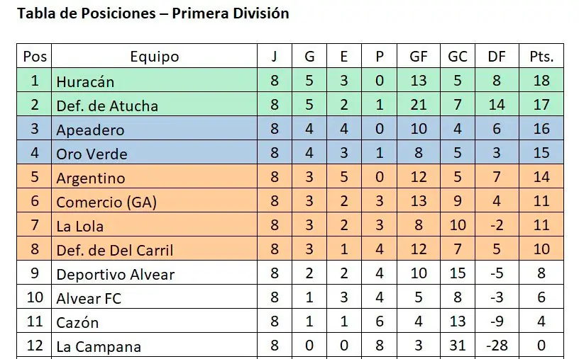 En Senior, Huracán 1/Alvear FC 1; Del Carril 1/Oro Verde 1;  Atucha 3/Argentino 1; Carlos Calvo 1/La Campana 0; Cazón 2/La Lola 0. Marcha puntero con 14 unidades Huracán, escoltado por Cazón con 13 y Carlos Calvo con 12.