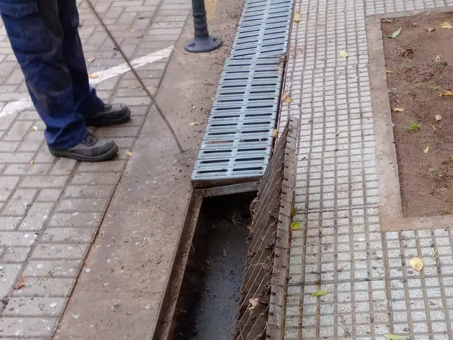 Mediante el empleo de palas y cepillos, los operarios levantan las rejillas de hormigón y las metálicas y retiran los residuos y el barro que se deposita en el interior de las canaletas, garantizando el escurrimiento del agua en días de lluvia.