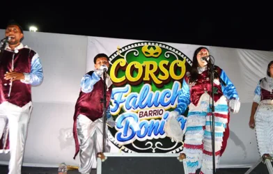 El evento se lleva a cabo en el marco de los 12 años de la murga que dirige Jimena Fanegas, con la participación de murgas de diferentes lugares de la provincia de Buenos Aires en el tradicional barrio Falucho, frente a la plaza homónima.