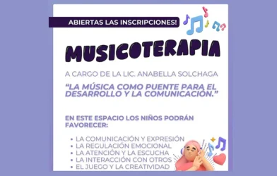 En la sede de avenida Ledesma 2538, entre Juan B. Justo y Lope Serrano, se encuentran en marcha propuestas como Musicoterapia y Juego y Lenguaje, destinadas a niños y niñas a partir de los 3 años, en grupos reducidos y coordinadas por profesionales.