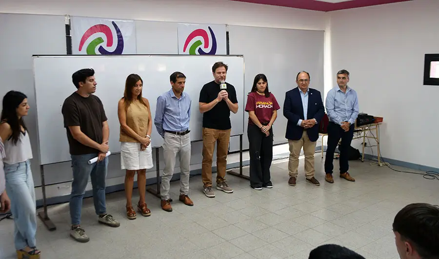 La charla estuvo a cargo del decano de la Facultad, Eduardo De Giusti, y la vicedecana, Marina Dolores Gómez Scavino, quienes estuvieron acompañados por el intendente José Luis Salomón y el director del CURS, Pablo “El Colo” Censi.