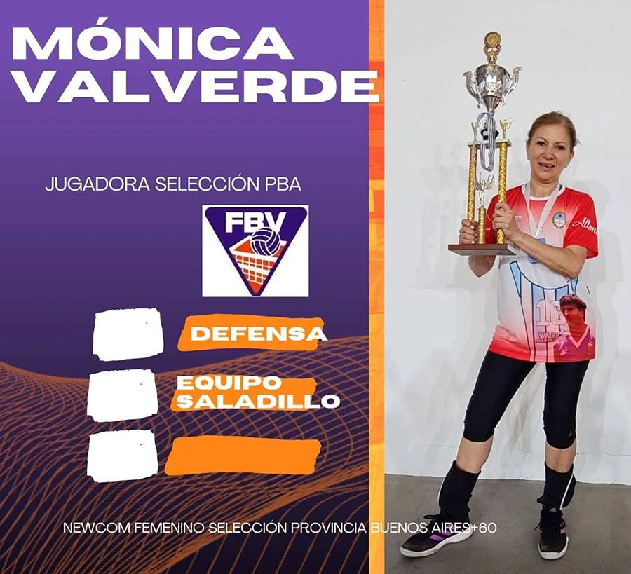En enero pasado, la Provincia seleccionó a unas 40 jugadoras de la categoría + 60 y Mónica fue una de las convocadas. Y en abril, el combinado bonaerense compitió en el Torneo Nacional disputado en Mar del Plata, venciendo en la final a Mendoza. Esta vez, en Chapadmalal, le ganaron a Córdoba, uno de los favoritos, y también se coronaron campeones.
