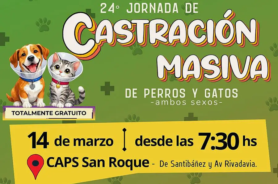 Programada para este sábado 14 de marzo, se llevará a cabo la primera jornada de castración masiva gratuita de 2026 y la vigésima cuarta desde que el Municipio implementó este sistema en Saladillo.