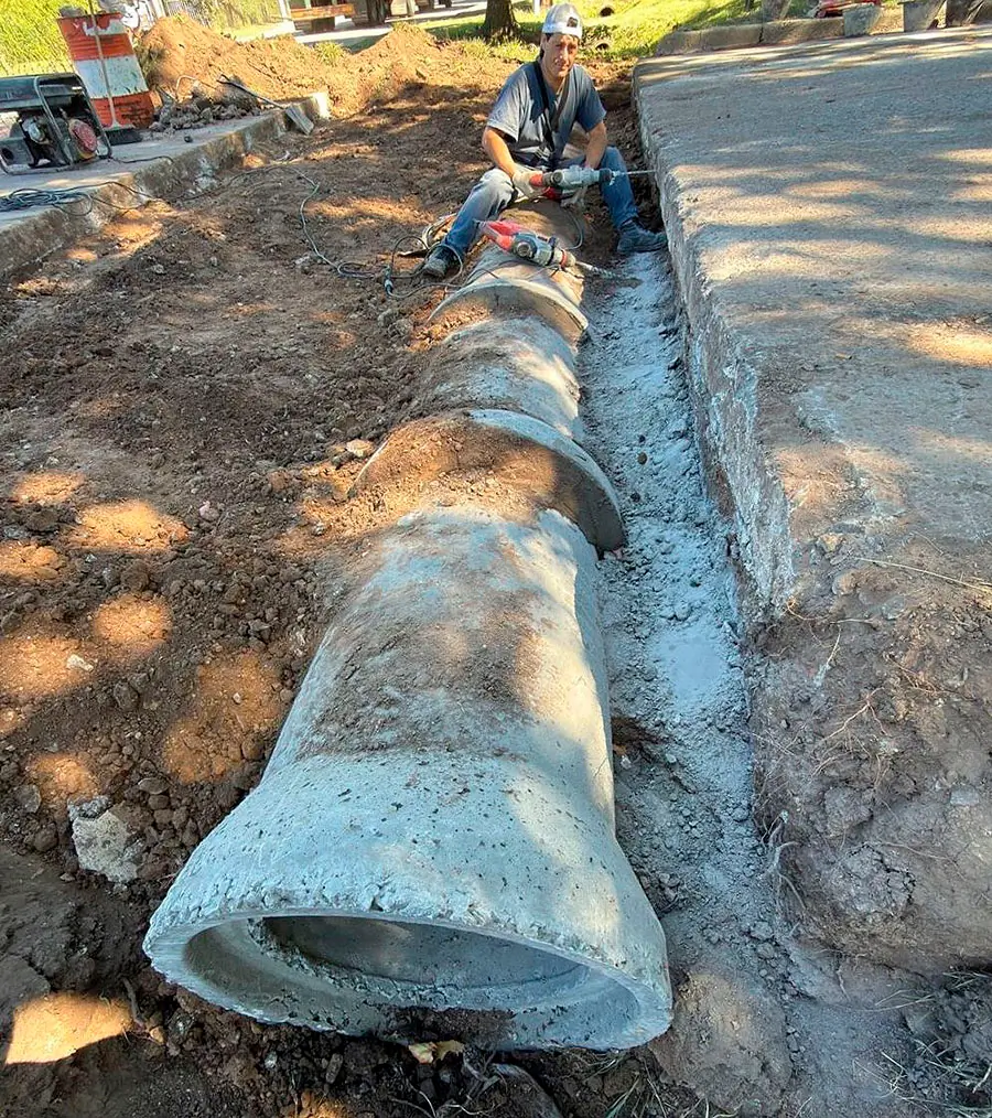 Luego de colocar los tubos nuevos de 60 cm, el personal niveló y llenó la losa con hormigón H25.