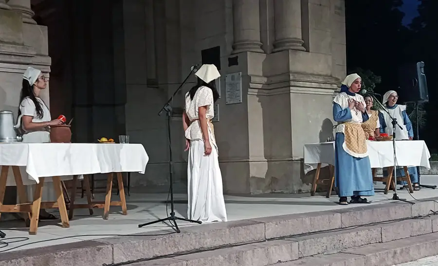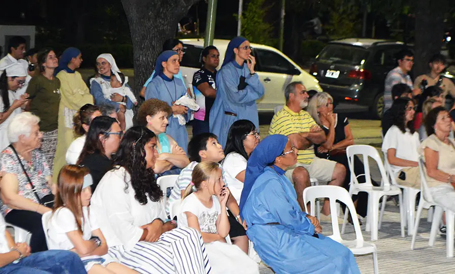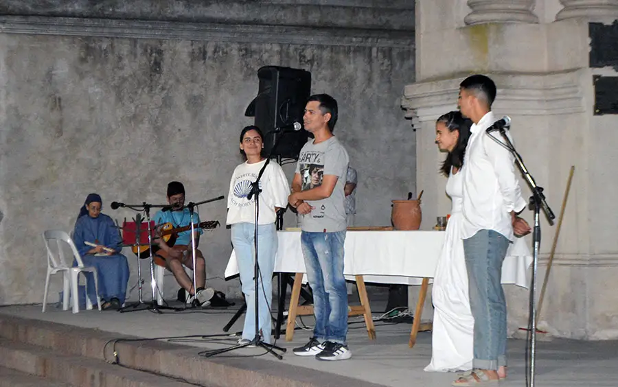 Este miércoles, en el atrio de la Parroquia Nuestra Señora de la Asunción, presentaron la obra de teatro “Las bodas de Caná” y luego compartieron testimonios con el público que participó.