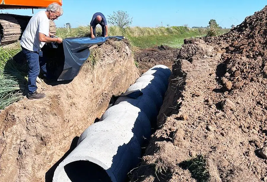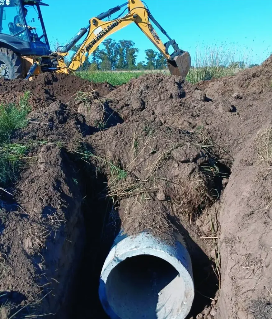 Personal y maquinarias municipales de la Dirección de Mantenimiento de la Red Vial, repusieron tubos en cruces de calles y canales en varios puntos la zona rural de Saladillo.