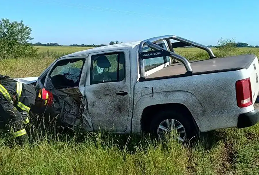 Una Volkswagen Amarok, conducida por una persona de Roque Pérez, terminó cruzada sobre una de las manos de la calzada, mientras que una Ford Ranger quedó volcada sobre la banquina.