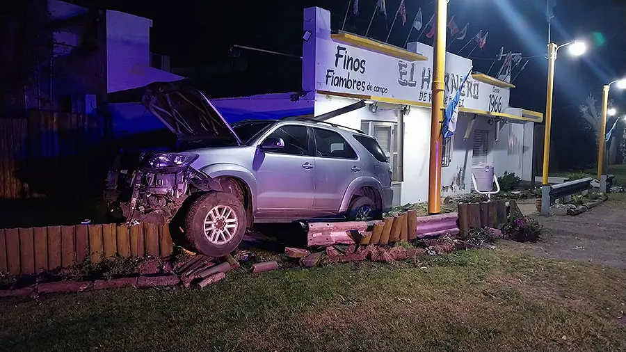 Los tres ocupantes de una camioneta Toyota que circulaban por la Ruta Nacional 205 en dirección a Saladillo, todos de nacionalidad china, salvaron sus vidas de milagro, tras despistar y chocar parte de la fachada del tradicional local roqueperense El Hornero, dedicado a la venta de fiambres artesanales.