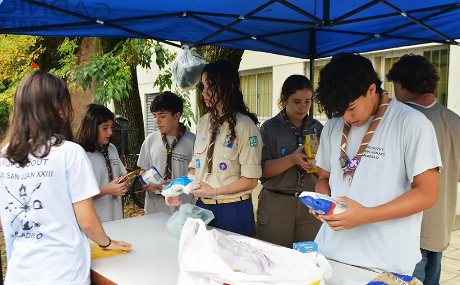Mucha gente también acercó donaciones a la sede de Cáritas, en la esquina de Cabral y Álvarez de Toledo, donde los scouts clasificaron la mercadería por rubro y por fecha de vencimiento.