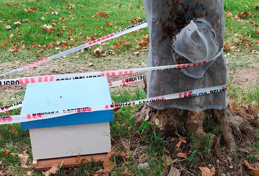 El lugar había sido debidamente señalizado, ya que el procedimiento se realizaba de manera segura, sin dañar a las abejas ni al árbol, priorizando el cuidado ambiental y la seguridad de los vecinos.