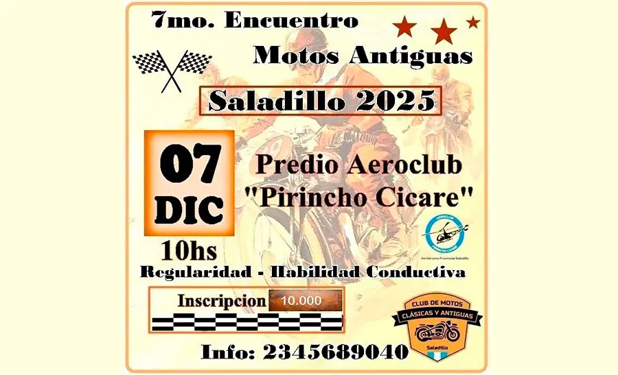 La fecha está marcada, los motores están listos. “Invitamos a vivir la pasión y la historia de las verdaderas leyendas sobre dos ruedas”, expresaron desde el Club de Motos Clásicas y Antiguas de Saladillo.