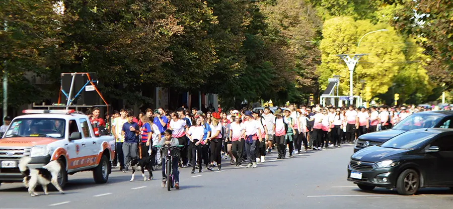 La actividad arrancó a las 13:30 con una caminata desde la Secundaria 6 por la avenida Rivadavia hasta la plaza principal.