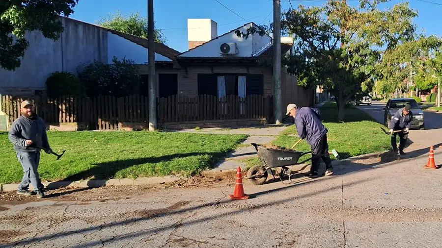Los trabajos consisten en levantar la arena y la suciedad que se deposita en los cordones cunetas, con el fin de mejorar el escurrimiento del agua en días de lluvia y evitar que la basura termine en el interior de los sumideros.