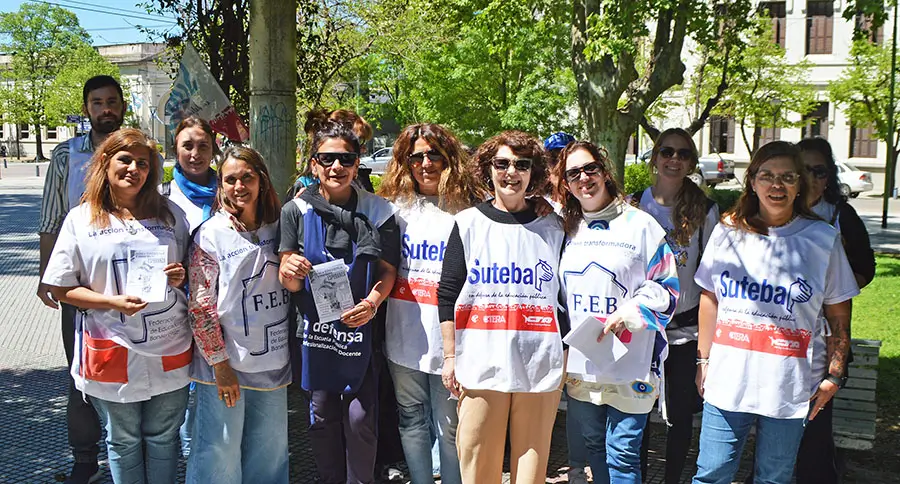 “Desde enero, nos vienen debiendo 110 mil pesos por mes por cargo”, manifestó la secretaria general del SUTEBA, Angélica Merlos.
