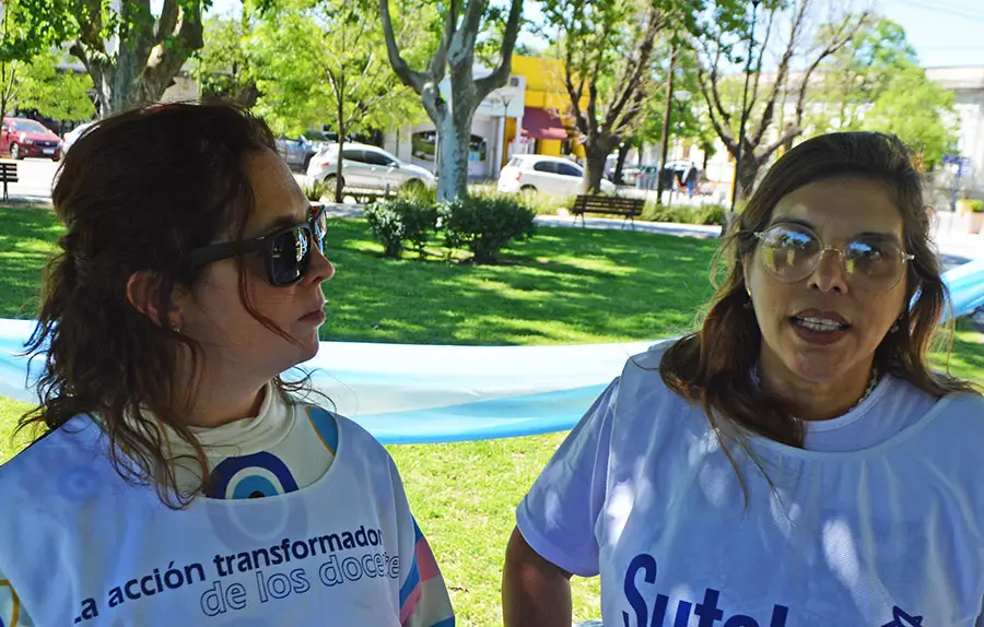 Bajo el lema “La Escuela enseña y construye esperanza”, la Unión de Educadores de Saladillo (UDES) y el SUTEBA de esta ciudad, compartieron este mediodía en la plaza principal una jornada de visibilización, en torno al paro nacional que se llevará a cabo el 14 de octubre próximo, convocado por CTERA y CTA.