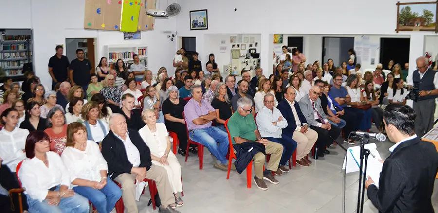 Tras el descubrimiento del cartel en el acceso de la Ruta 215, la comitiva se dirigió hasta la Biblioteca Municipal Augusto Cicaré para compartir el acto. Participaron, entre otros, el intendente José Luis Salomón; el ex mandatario Carlos Gorosito; funcionarios, concejales, consejeros escolares, familiares del homenajeado y vecinos.