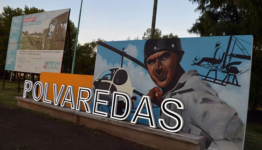 En los 114 años de su fundación, Polvaredas vivió este martes un momento histórico y de gran emoción, al quedar inaugurado el cartel de ingreso a la localidad junto al mural que le rinde homenaje a su hijo dilecto, Augusto “Pirincho” Cicaré, el genio que, a partir de sus helicópteros y originales invenciones, hizo trascender a Saladillo en el mundo entero.